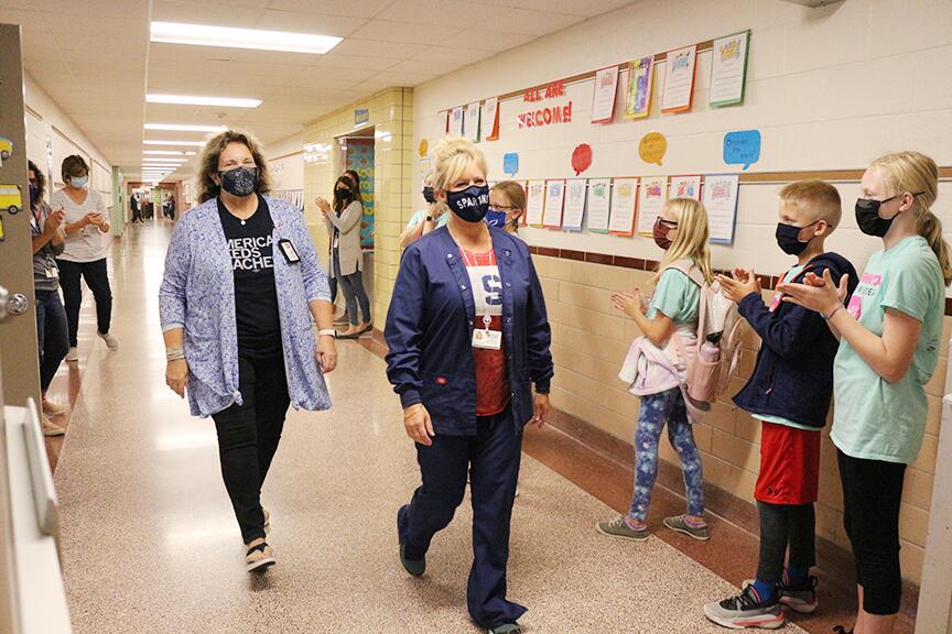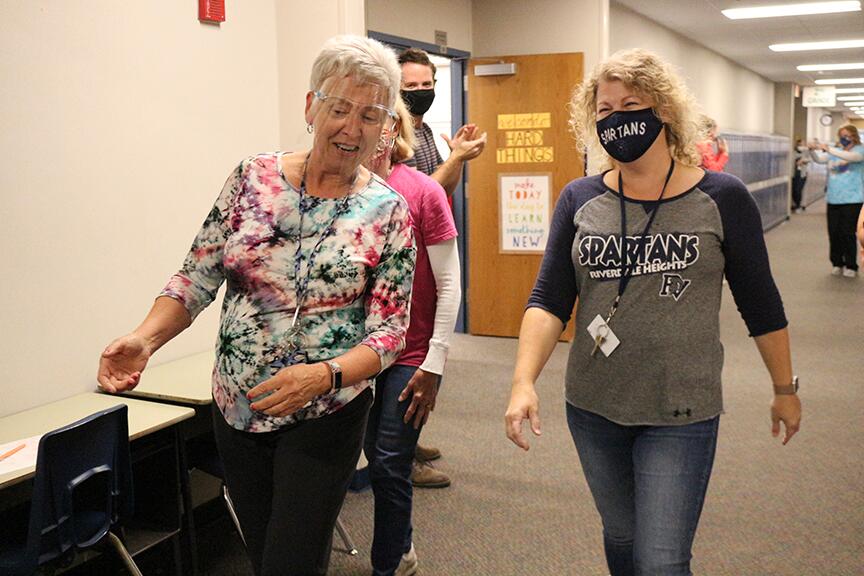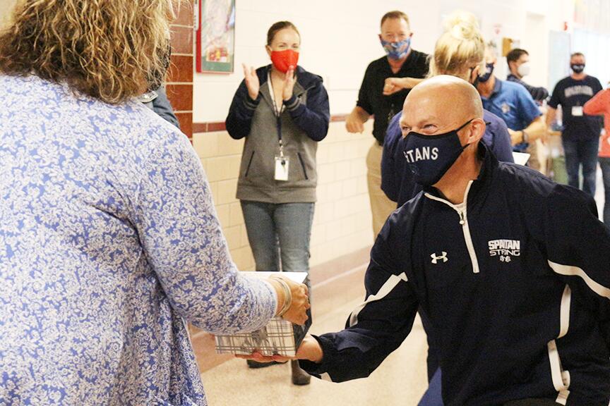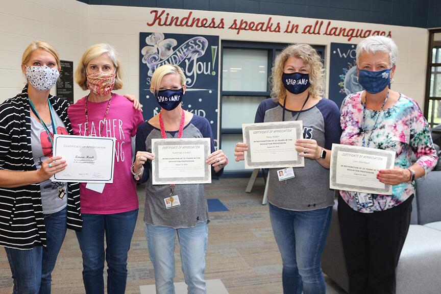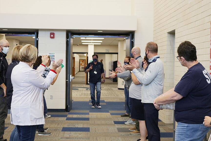 In a normal year, the faculty and staff of the Pleasant Valley Community School District gather all in one place for a kick-off to the start of school. In the meeting, we honor staff members who have dedicated years of service to education. This year, we could not meet, so Superintendent Brian Strusz honored each staff member in their buildings with a parade! Check out the photos and say thank you if you run into one of these dedicated individuals!