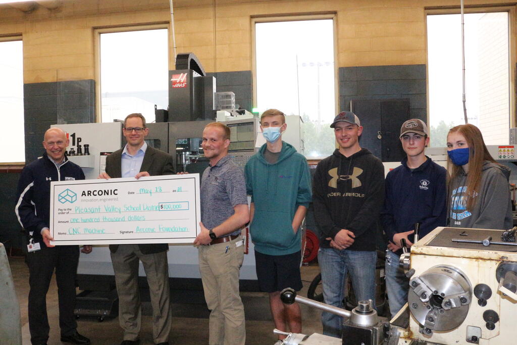 The Pleasant Valley Community School District is thrilled to announce a $100,000 investment by Arconic in the District’s Career and Technical Education (CTE) program. With the grant, PVHS purchased a Haas TL-1 CNC Lathe, a Haas TM-1P CNC Vertical Milling Machine and two manual Bridgeport Vertical Milling machines with power feeds and digital readout capabilities. These pieces of equipment, along with a previously purchased numerically controlled Plasma Cutter, will allow PVHS to take a major step forward in preparing students for a registered apprenticeship and/or CNC Programming Certificate through Eastern Iowa Community Colleges.