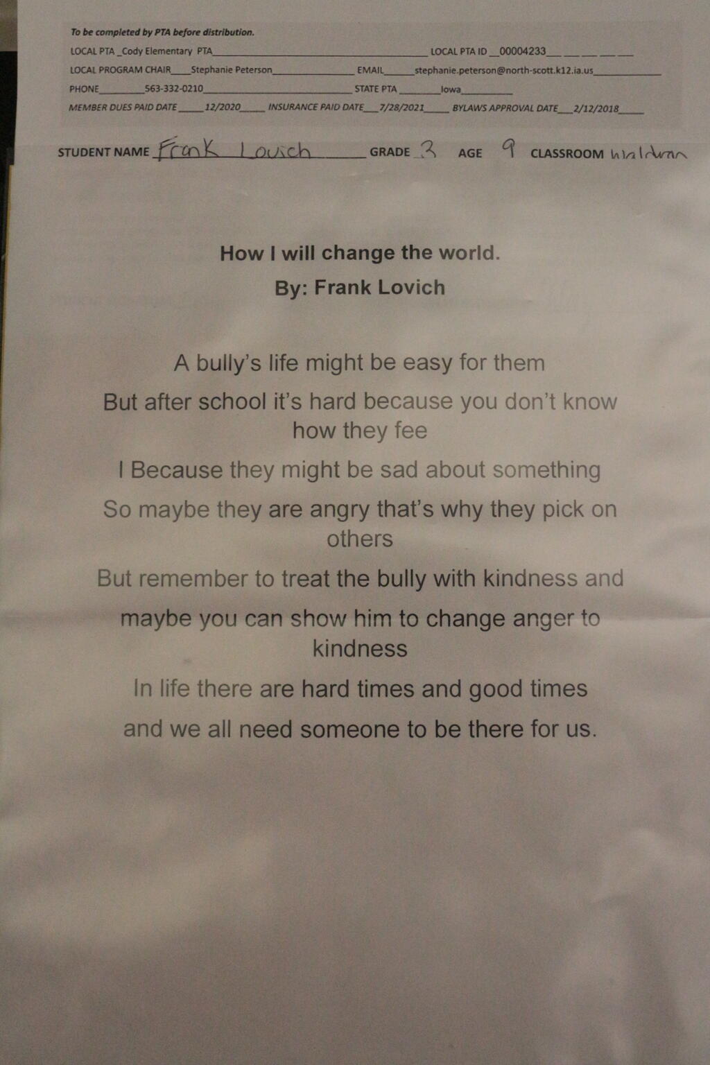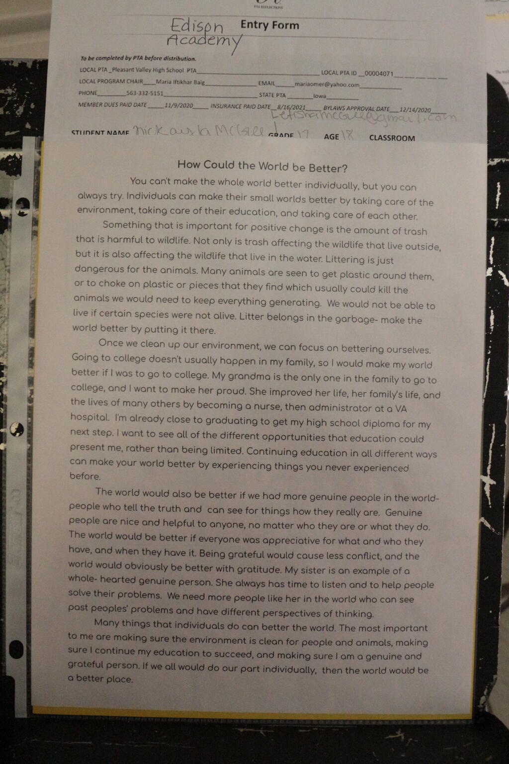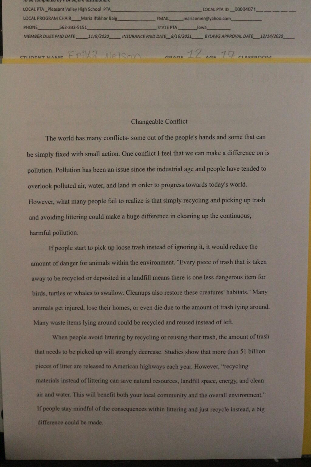 Pleasant Valley Community School District honored a record-breaking 138 students artists during its annual PTA Reflections Awards Ceremony. The PTA Reflections program has two goals: to encourage participation in the arts and to recognize our students for their achievements.