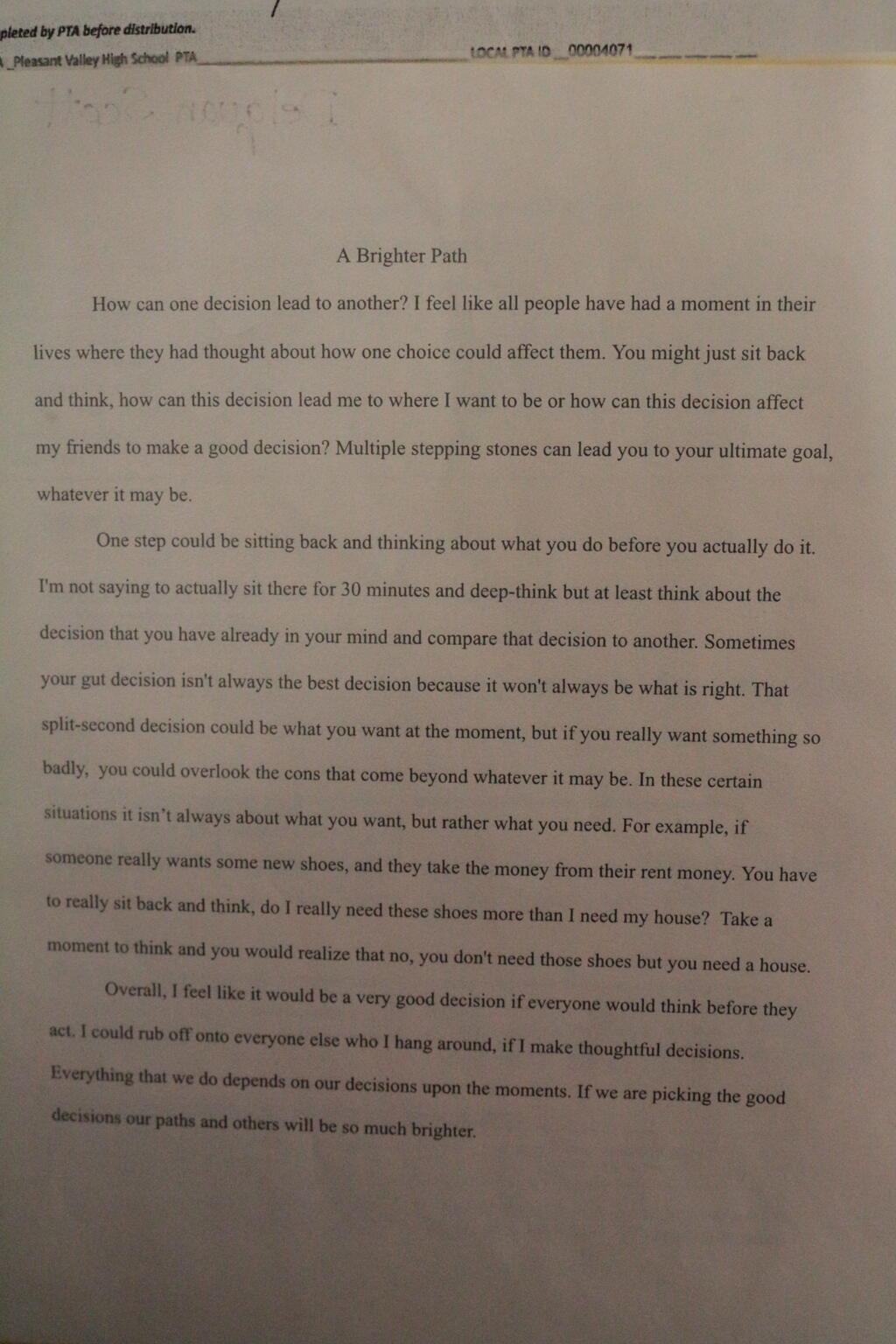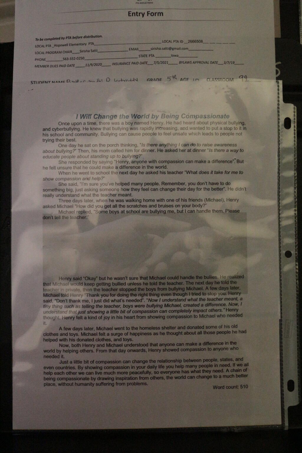 UPDATE: Congratulations to the PV Students who won the State PTA Reflections Contest! Their submissions will be judged nationally! More than 50 PV entries placed in the top three of their categories at state!