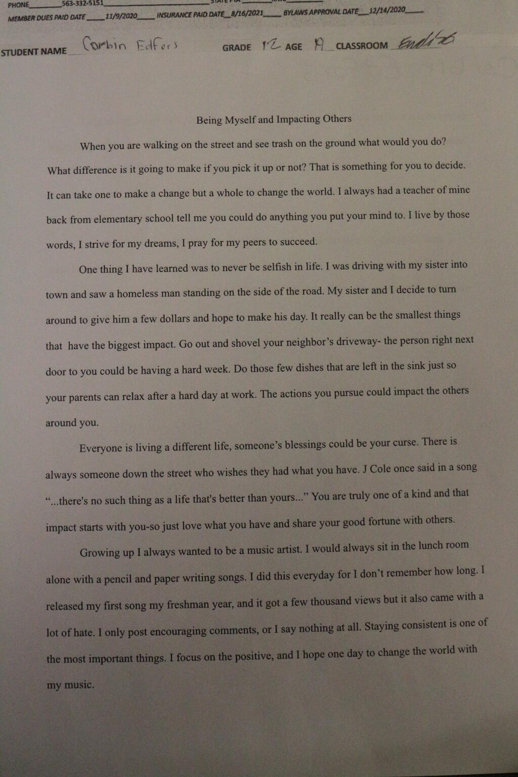 Students enter works of art in the following categories: Dance Choreography, Film Production, Literature, Music Composition, Photography, and Visual Arts. The entries are judged by local artists, with the top submissions advancing to the state competition.