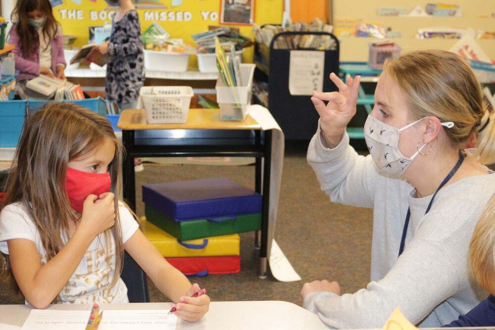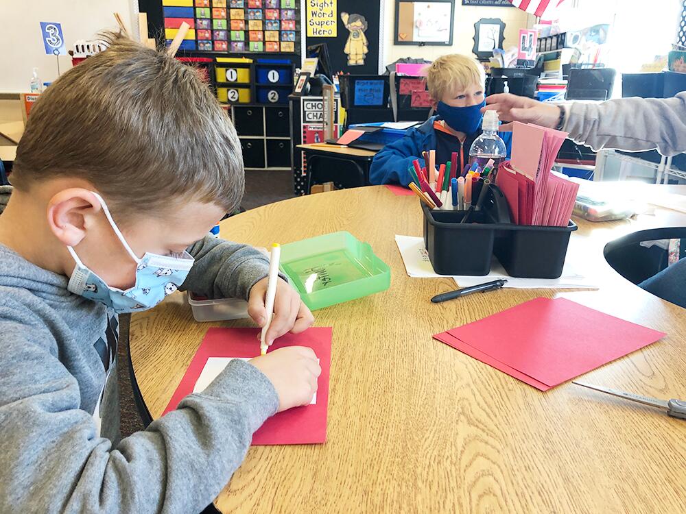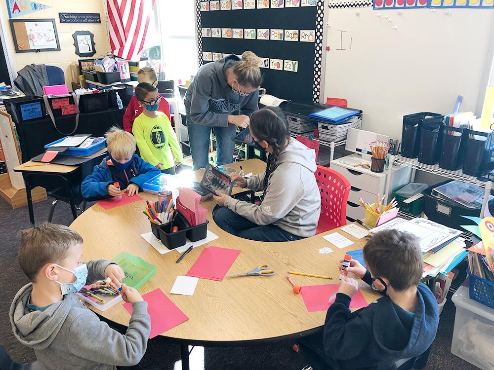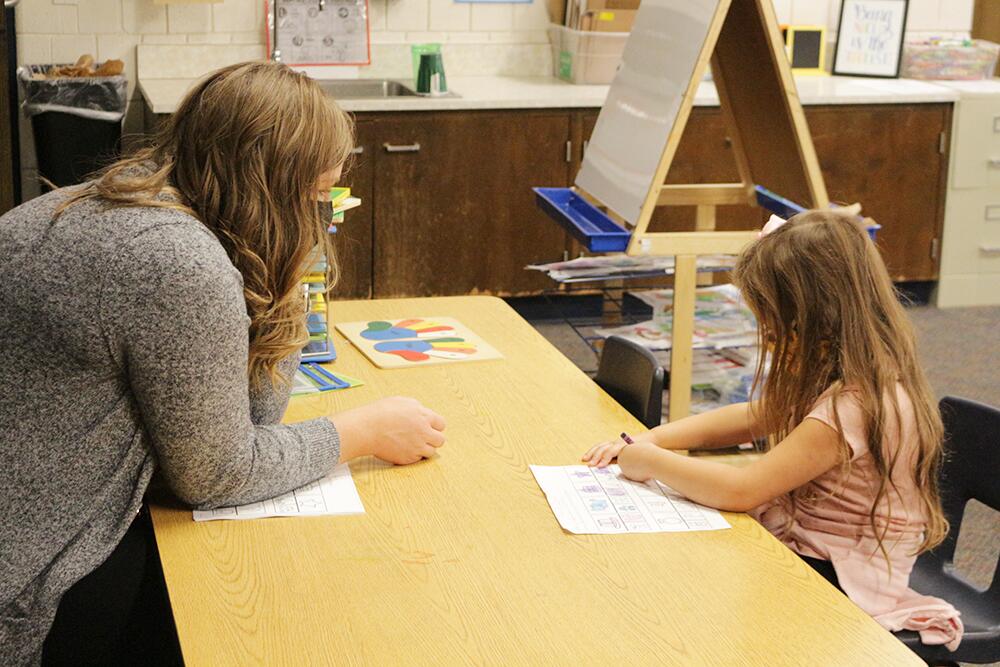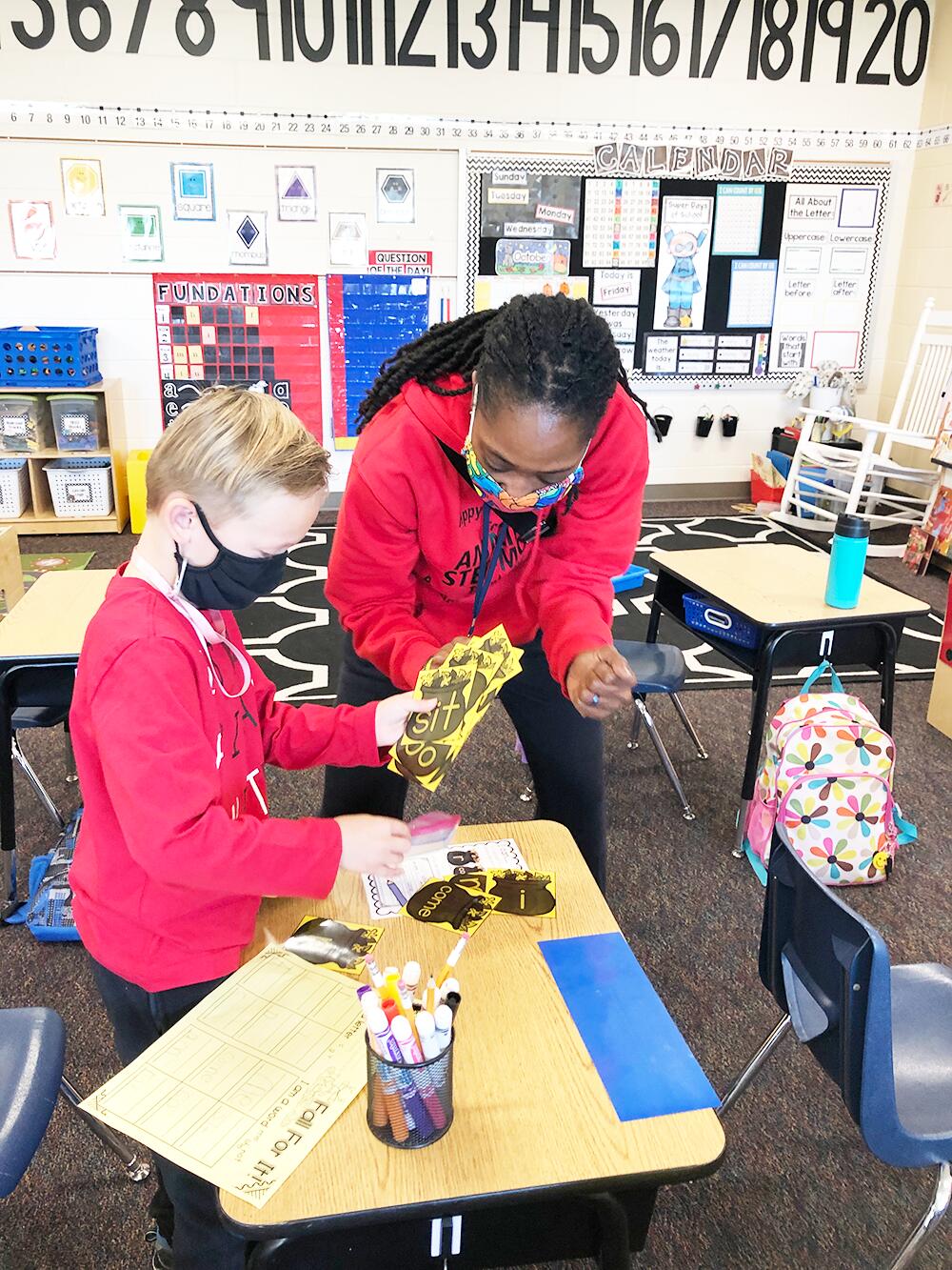 Kindergarteners all over the district have a good time when they're working in centers, but it's also a time for individual attention to each student. In Ms. Brown (Hopewell) and Ms. Doleaney's (Bridgeview) rooms, students are learning their letters, identifying words, reading the pictures and sounding out spelling. Click the pictures to see all the fun!