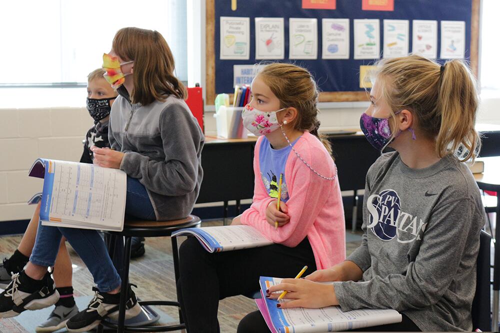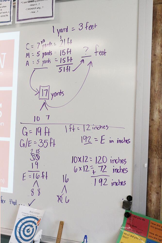 There are so many ways to think about math! This group in Mr. Jones’s fourth-grade class is trying to figure out how tall an elephant is in inches. They were given yards and feet and had to convert that to inches with pretty big numbers. They discussed how they could take those bigger numbers like 16 and make them into manageable and friendly numbers that are easy to add, subtract, multiply, and divide. Together they came up with a solution and left feeling pretty confident that they could teach another student to do the same problem!