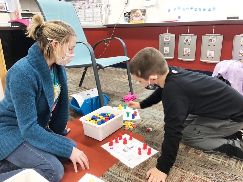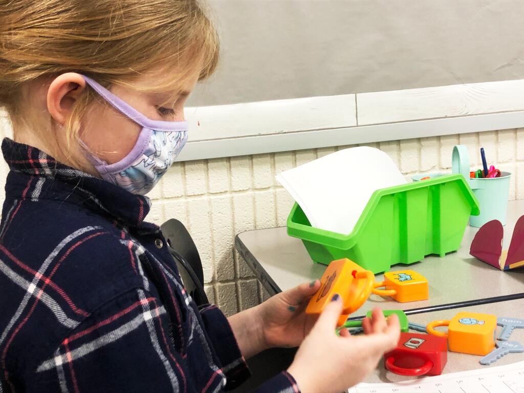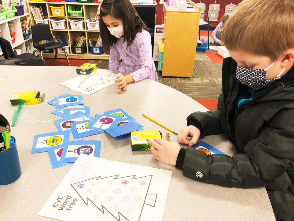 When you walk into Mrs. Howes’ Kindergarten class, it looks like the students are playing games. But take a closer look and you’ll see each group is actually practicing skills they’ve learned – whether in math or reading! Some students match locks with pictures on them to keys with the corresponding words; others roll dice and place a token on the right number. Simple and fun exercises to practice what they already know!