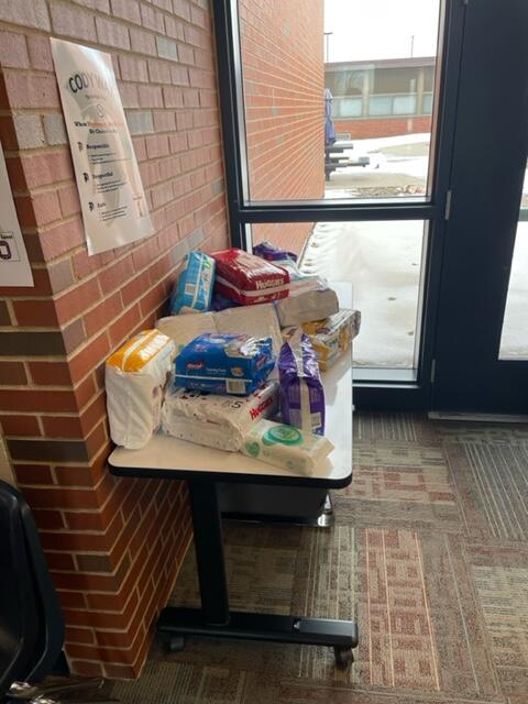 Cody hosted a diaper drive during the month of January to collect diapers for Hiney Heroes (a local organization that provides diapers to those in our community in need) It was a competition among the grade levels to see who could collect the most.