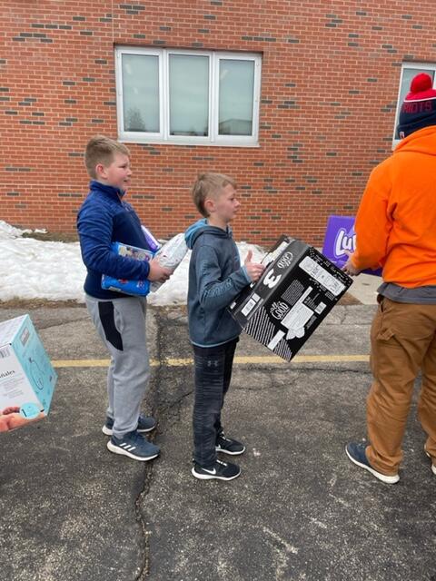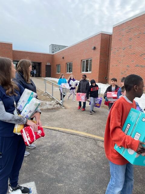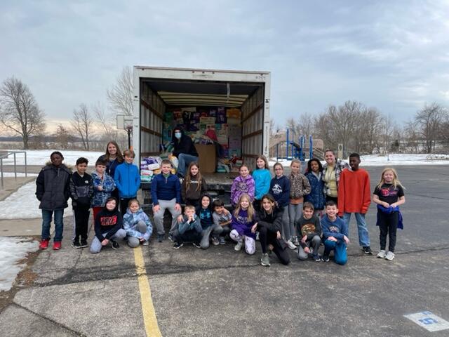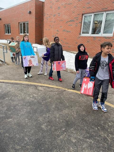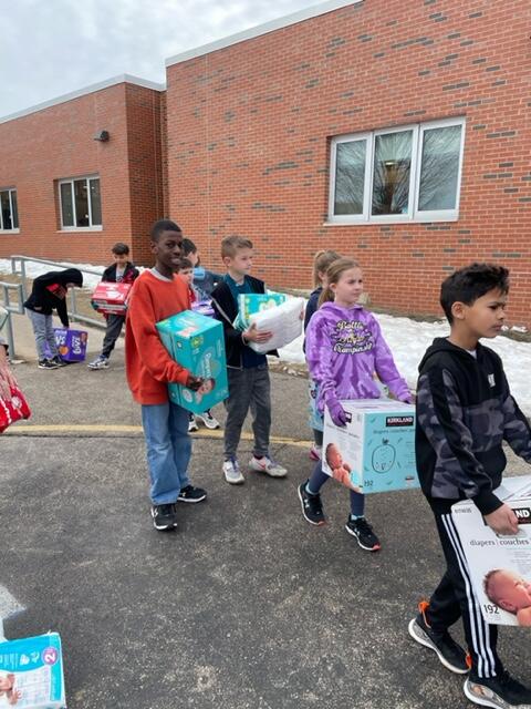 Over the course of the month, Mrs. Samuelson’s 4th graders gathered and organized the diapers, keeping track of totals and making announcements each week. Today they loaded them up in the moving van to be passed out to those in need.