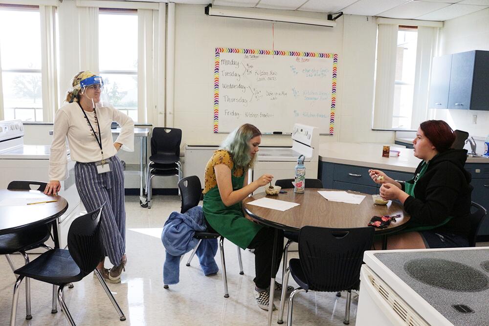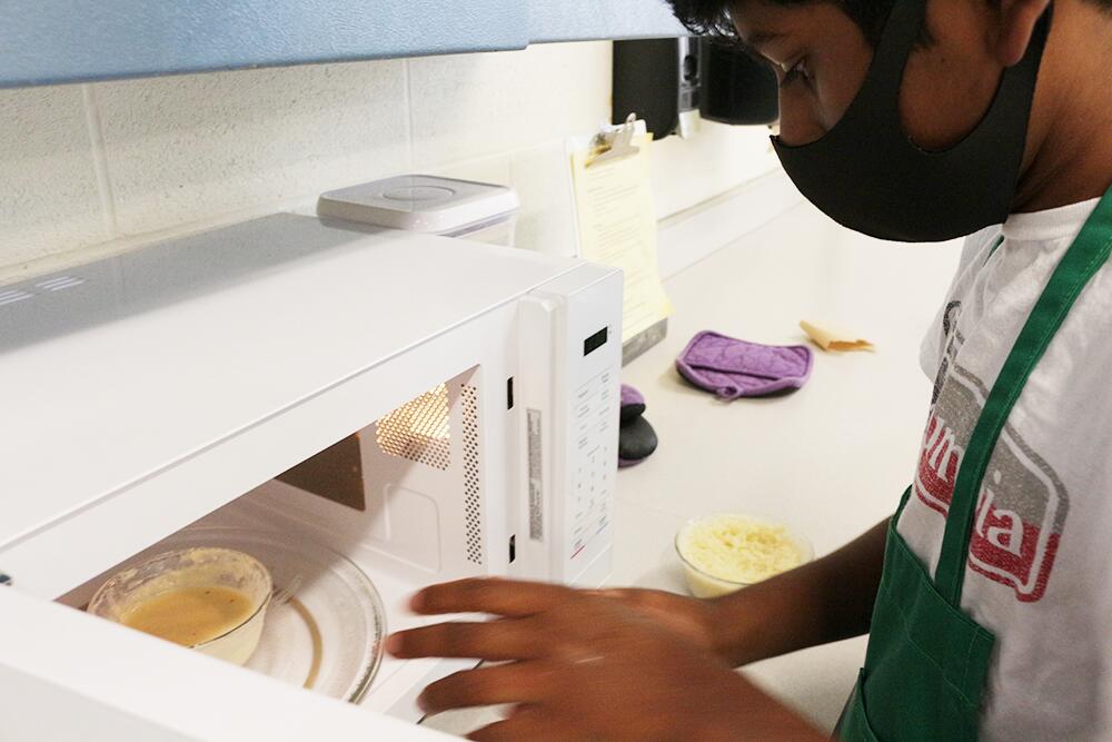 Who knew you could make a yummy cake right in your microwave? Students in Ms. Pardoe’s 8th grade Family and Consumer Science classes are making microwave cakes. They’ve been learning about measuring equivalents and conversions, so each student had to convert each measurement to make sure the cake came out correctly. The special treat satisfied these future bakers.