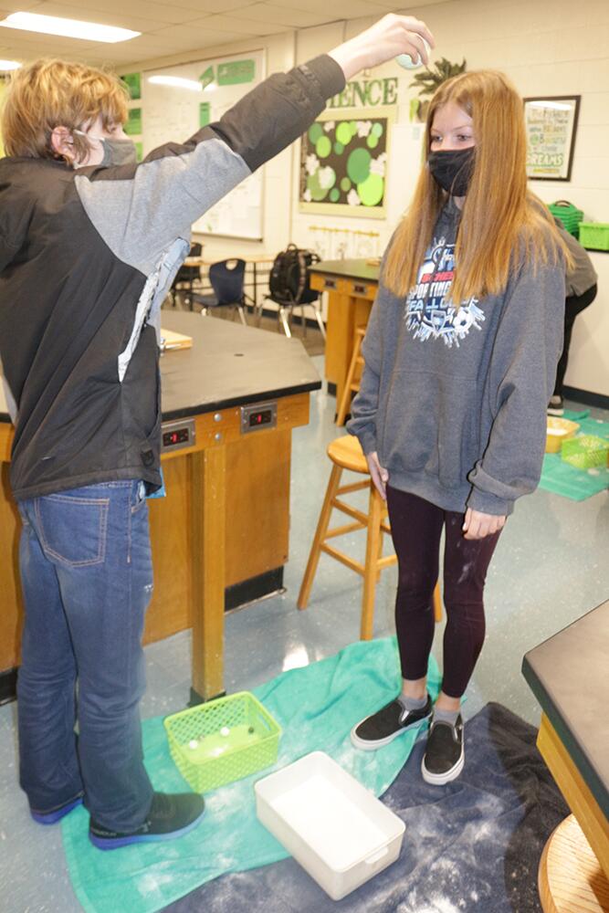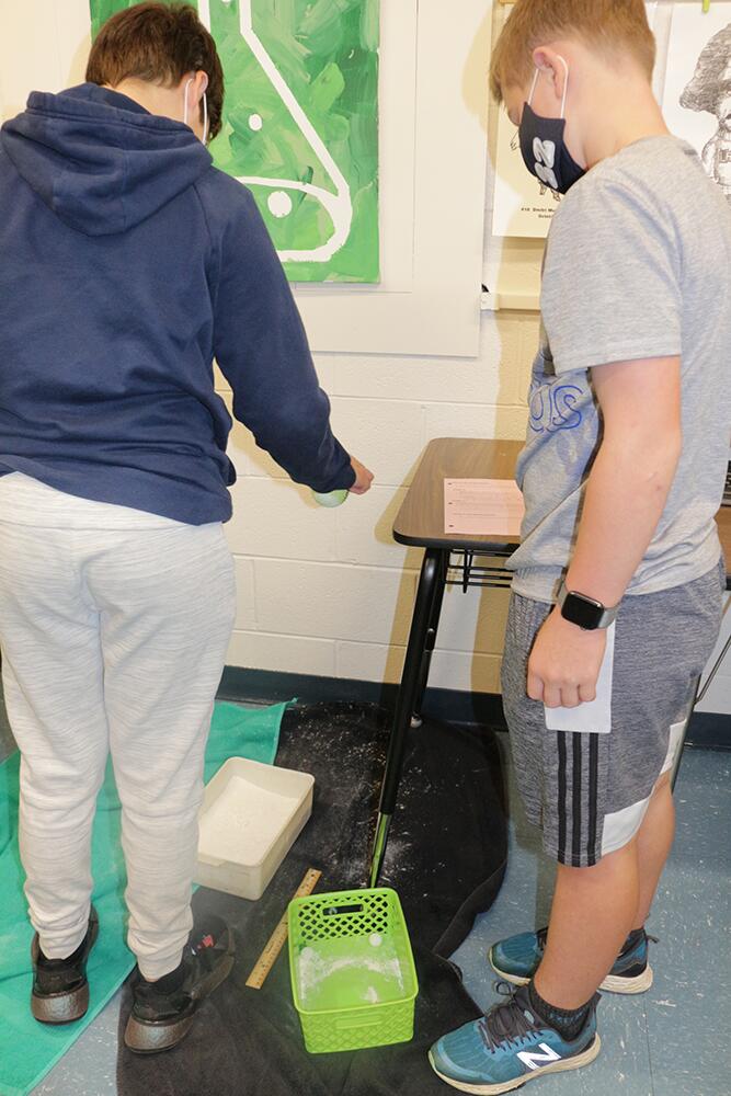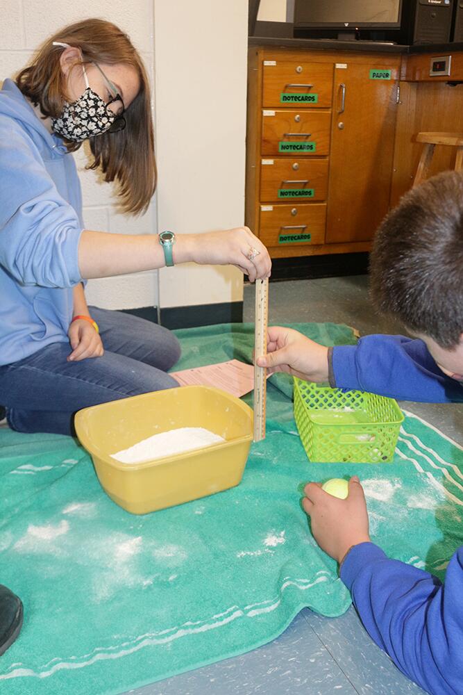 PVJH students are learning all about the moon in Mrs. Krueger's science class. To get a better idea about craters, they created their own by dropping balls of different size and weight into flour. It can get a bit messy, but the simple experiment shows our students how asteroids and meteoroids dimple the surface of the moon. Click the pictures below to enlarge.