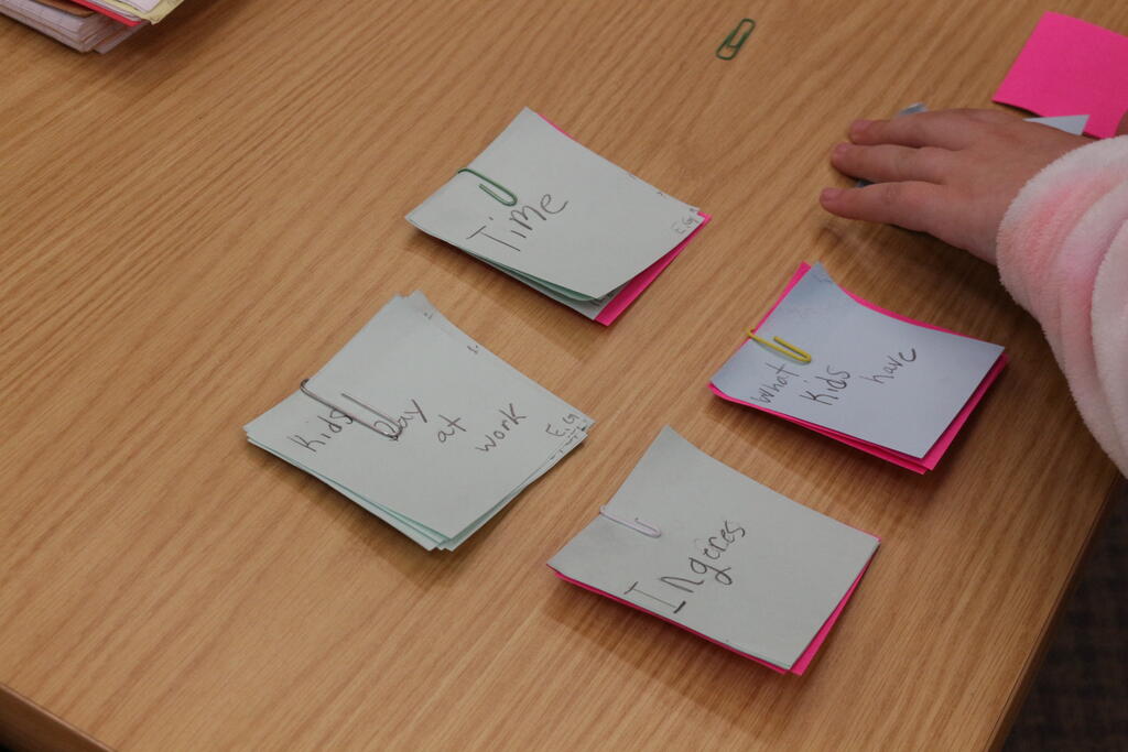 4th grade students across the district spend this part of the year researching the Industrial Revolution. In Mrs. Belby’s 4th grade class, students pile up post-it notes filled with facts they’ve found online and from books in the library about child labor laws during the early 20th century. They’re categorizing each note to see what they have in common. Each category helps them determine a theme, which in turn, will help them write sentences and paragraphs for their final project. It’s a lot of high-level thinking as all their research comes together. See the videos below for their discussions.
