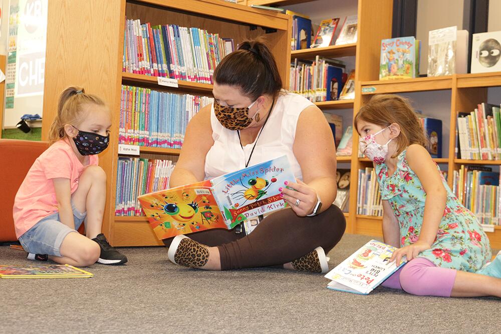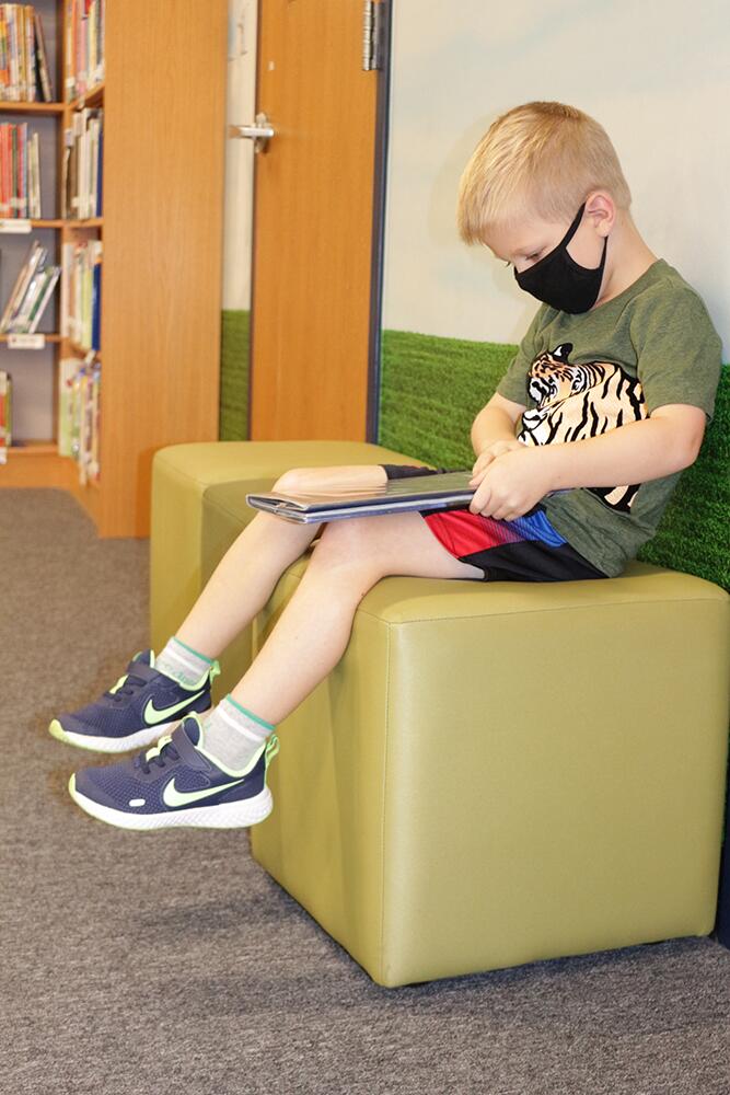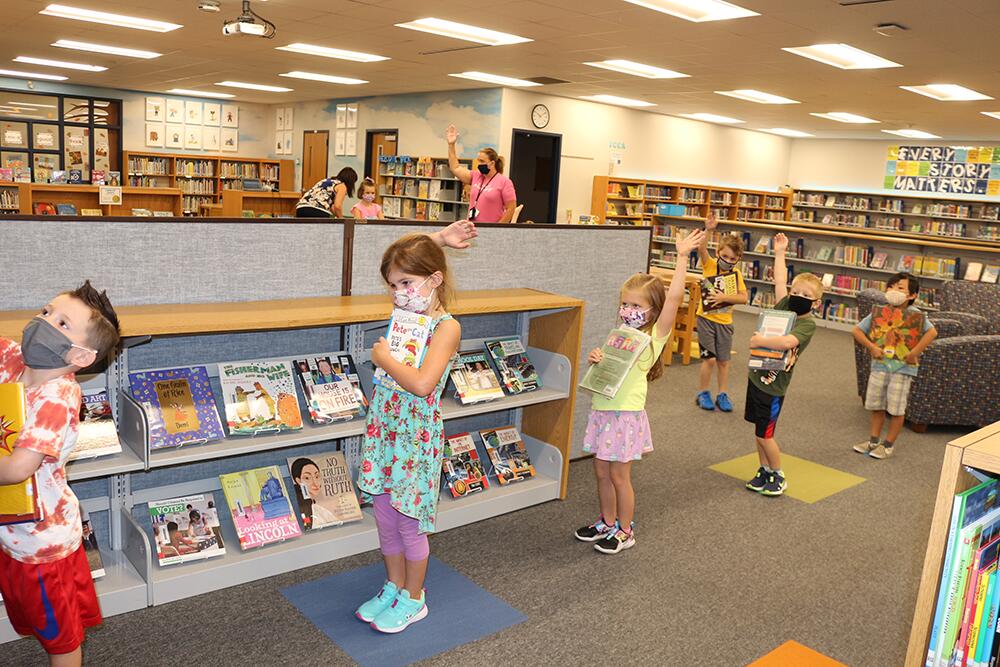 At Riverdale Heights, library lessons look much the same as they have in years past. Students come in, read books, and check them out! When books come back, they are put in a 72 hour hold before they go back on the shelves. Students are finding creative spots to social distance while they dive into their imaginations!